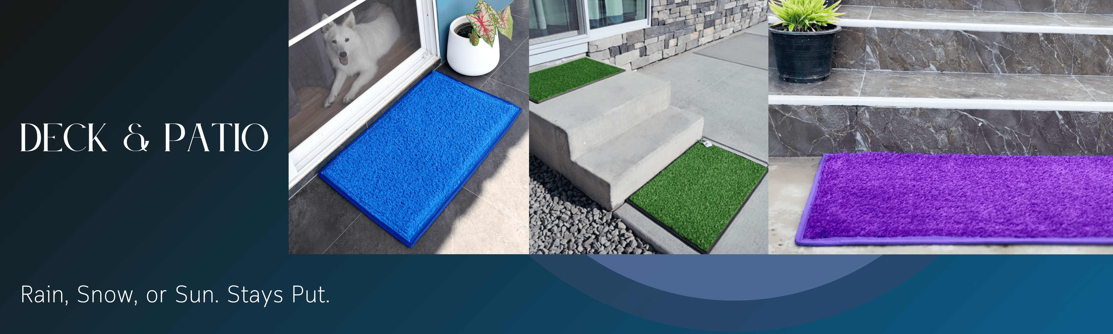 Our indoor mats add style, elegance, and comfort to all your indoor living spaces. Using both course and plush synthetic turf fibers combined with anti-static non-slip rubber undercoating, these mats stay stationary and avoid the common problems of mat slippage, sliding, and roll-up. With five alluring colors to choose from these mats are ideal for every room inside your home:
