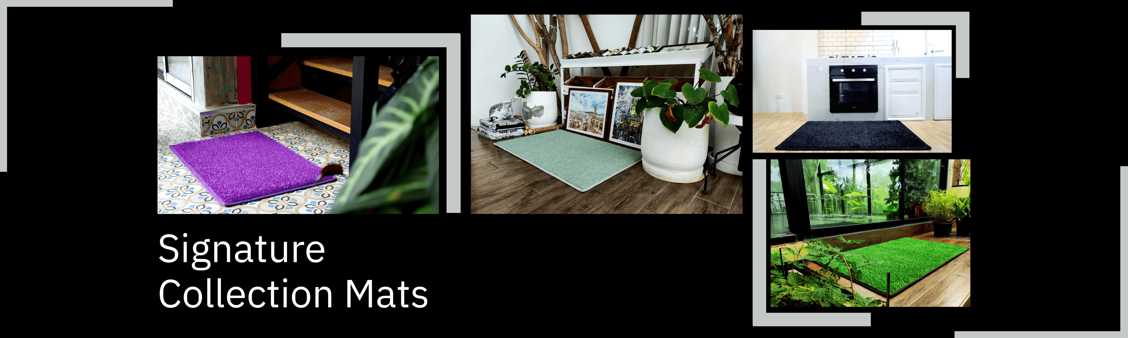 Our indoor mats add style, elegance, and comfort to all your indoor living spaces. Using both course and plush synthetic turf fibers combined with anti-static non-slip rubber undercoating, these mats stay stationary and avoid the common problems of mat slippage, sliding, and roll-up. With five alluring colors to choose from these mats are ideal for every room inside your home: